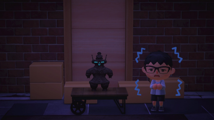 The Animal Crossing. The ancient statues eyes will start glowing blue at 600 pm.